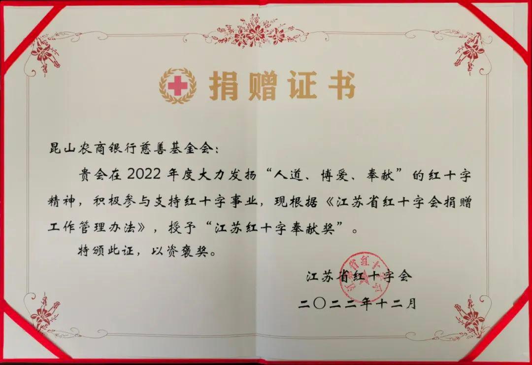 昆山農(nóng)商銀行慈善基金會被表彰為“江蘇省紅十字奉獻獎”