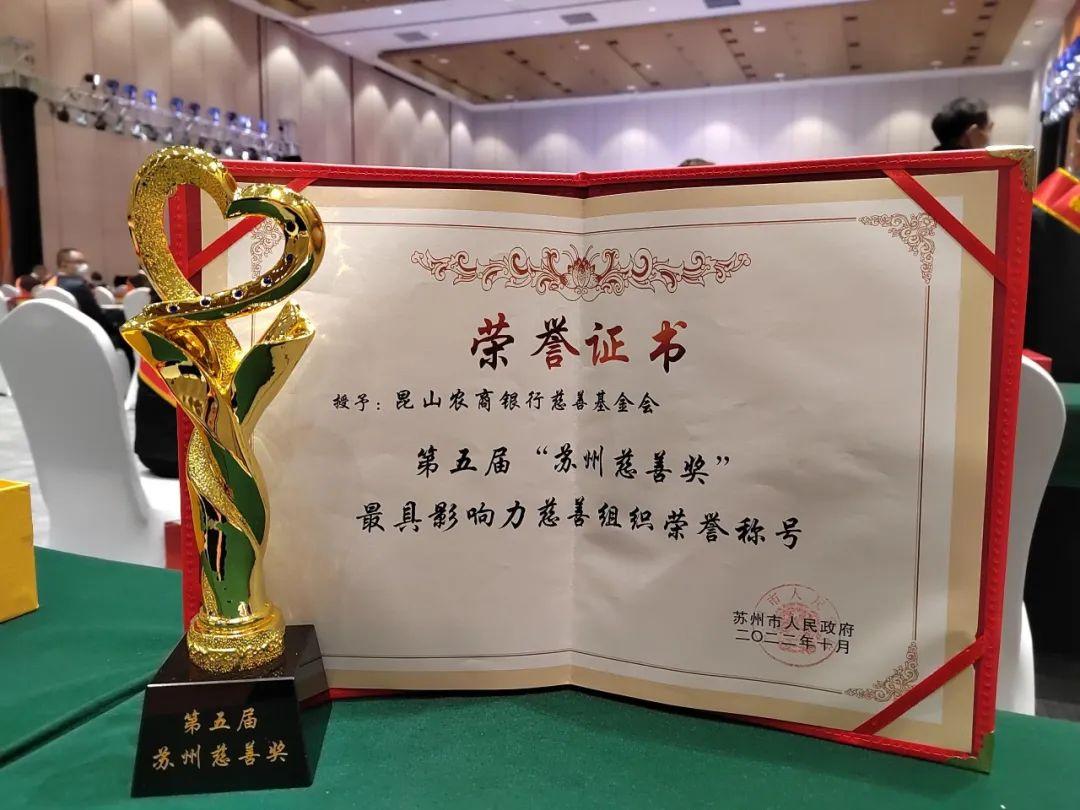 榮獲蘇州慈善獎“最具影響力慈善組織”榮譽稱號